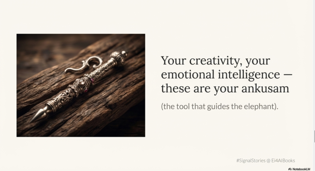 Your creativity, emotional intelligence, curiosity — these are your ankusam. (the tool that guides and control the elephant).